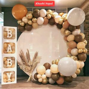 Step into a world of sweetness and anticipation with our baby shower balloon decoration. Balloons in shades of tenderness and joy fill the air, creating a whimsical atmosphere. Join us in celebrating the miracle and charm of our thoughtfully designed balloon décor.